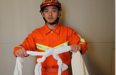 消防隊(duì)員表示,這樣給床單打結(jié),不但能最大程度節(jié)約床單的長度,而且打成的結(jié)不容易打滑,不會輕易松掉。在逃生時(shí),確保繩結(jié)結(jié)實(shí)不松即可。除了床單之前要打好結(jié)外,還要在床單逃生繩上,每隔一小段打一個(gè)小結(jié),為了方便逃生。
