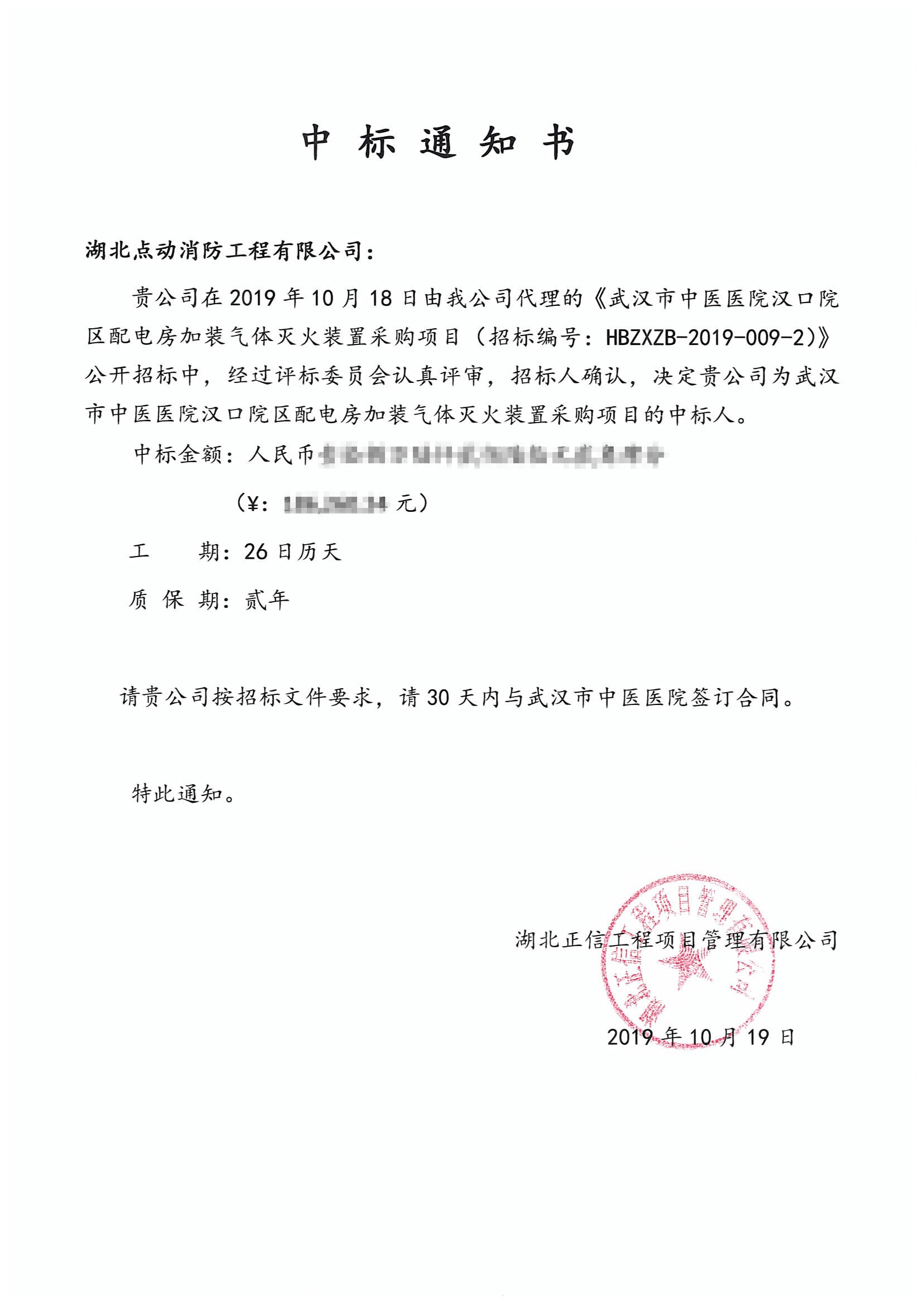 此次為武漢市中醫(yī)醫(yī)院漢口院區(qū)配電房加裝氣體滅火裝置采購項目