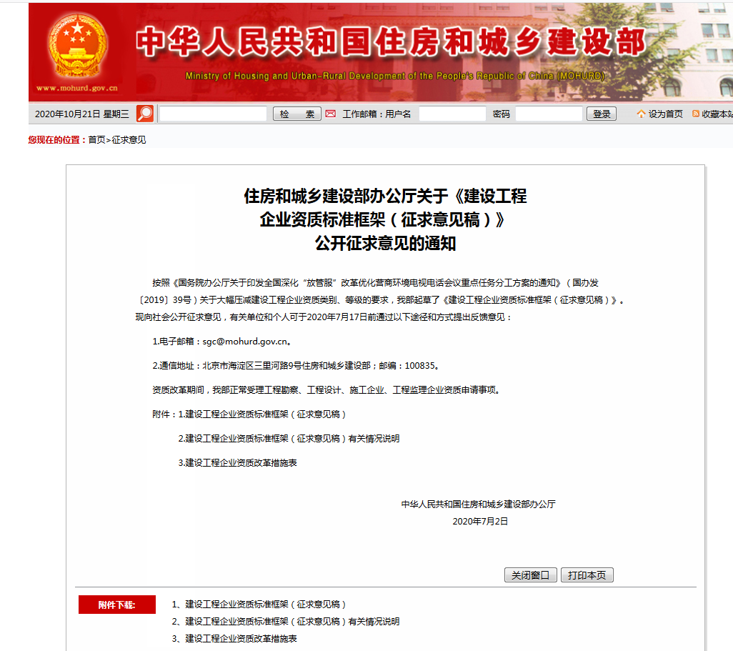 近日,住建部官網(wǎng)正式公布了關(guān)于《建設(shè)工程企業(yè)資質(zhì)標準框架(征求意見稿)》公開征求意見的通知。